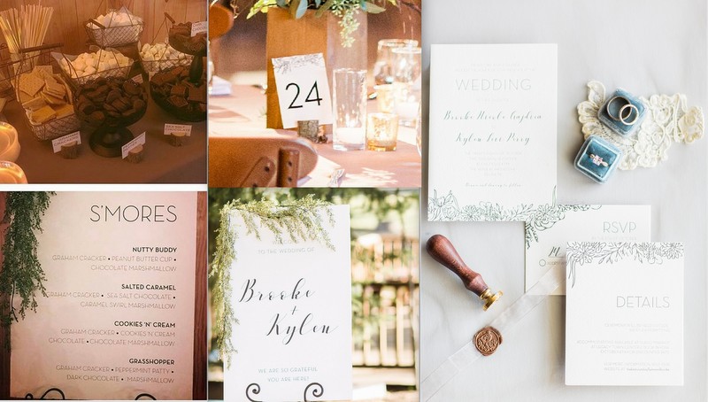 Our graphic designer bride Brooke did a beautiful job for her wedding design creating letterpressed invitations, table numbers, escort cards, and signage. Additionally, Brooke’s family created their own S’mores station for a fun dessert for guests!