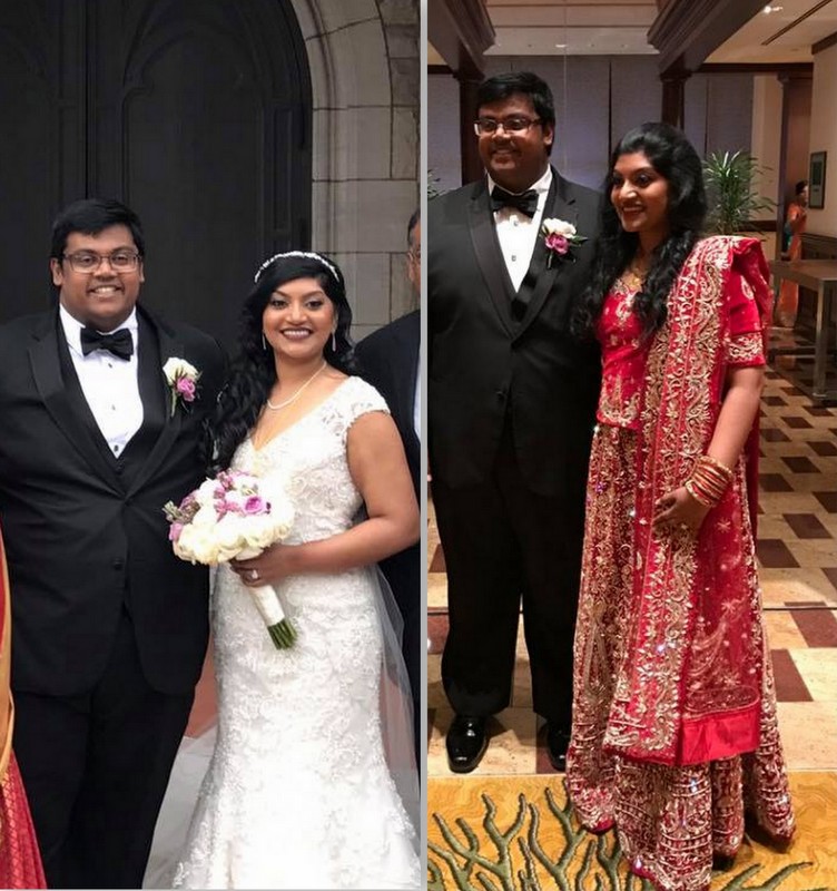 Sharon’s two looks for her wedding day were both reflective of her Christian faith and Indian culture, and she looked beautiful in both!
