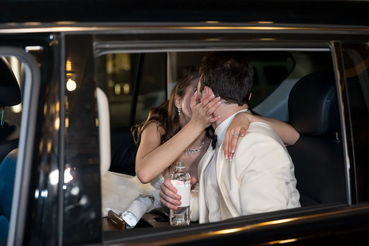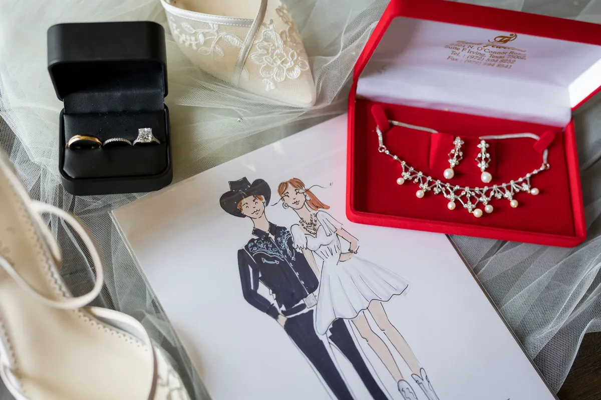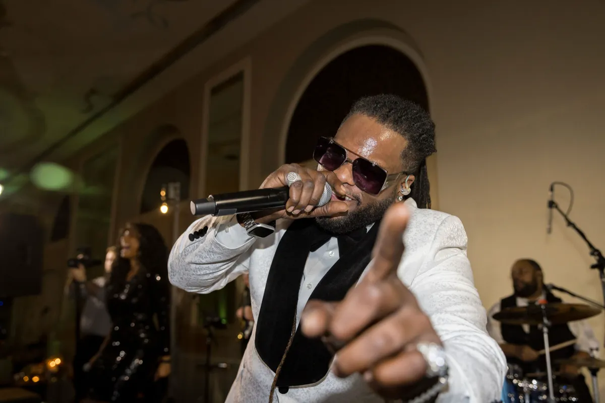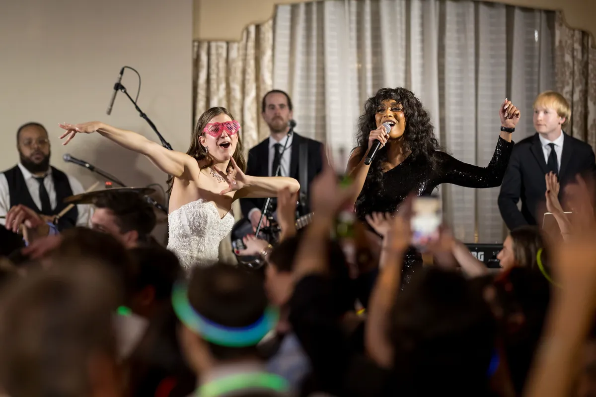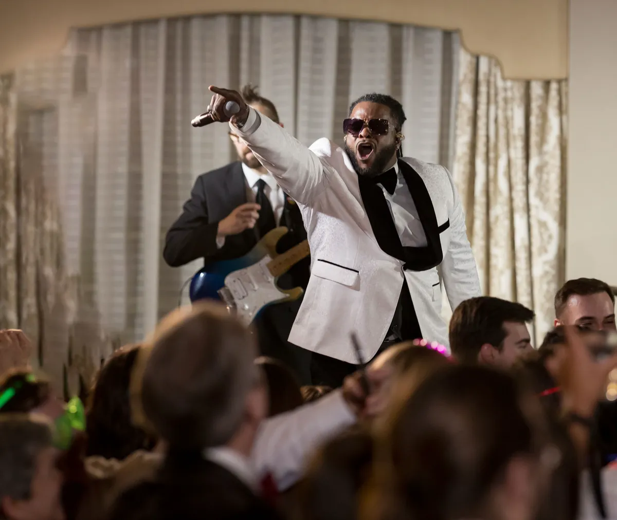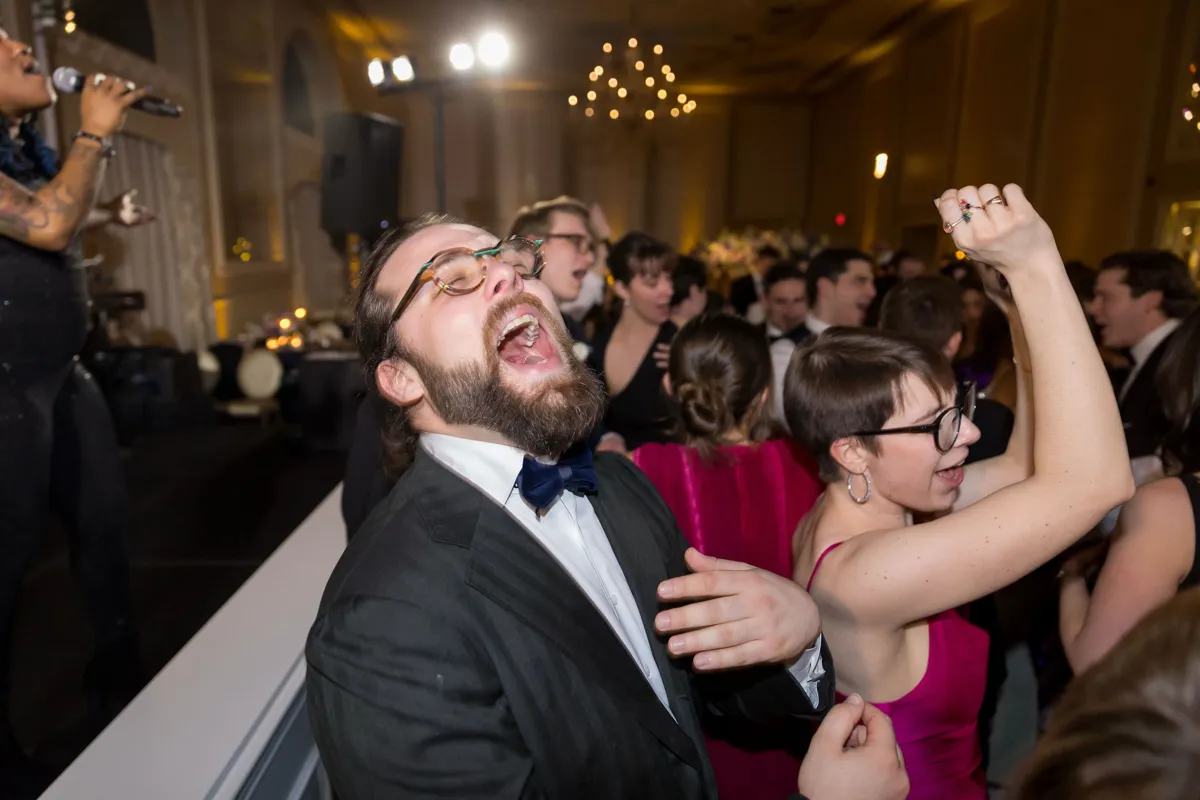 Camille & Matt’s regal wedding was a site to behold! Guests first got a taste of the elegant design with the letterpressed and engraved invitation with midnight blue and gold details designed by Significantly Said: Invitations by Significant Events. The wedding was held at a historic downtown Dallas hotel full of incredible architectural details and history. Camille’s color palette of shades of blue, shades of purple, and white looked perfect in the venue and for a winter wedding. Florals were arranged in a lovely, organic way that was both fresh and classic. Guests were greeted with champagne as they entered the ceremony room. The Jewish ceremony was held under a white chuppah adorned with a spray of florals which continued down the aisle. Cocktail Hour featured a custom made wood and floral arch for photos, a bar serving a variety of signature cocktails, as well as one poured through an ice luge with the couple’s monogram on it. The ballroom looked so elegant with crystal chandeliers and a painted ceiling above and tables below with midnight blue linens, lush florals, gold chargers and flatware, and custom paper goods. Camille & Matt’s Sweetheart Table was surrounded with a lovely meadow of floral right in front of their dance floor with custom monogram. A formal plated meal was served which guests enjoyed. Two cakes served as dessert: one a grand bridal cake and the other a football helmet shaped groom’s cake! A champagne tower provided the perfect cake pairing. A fabulous party band kept the dance floor completely packed all night. A yummy tater tot bar provided a fun late night snack. A send-off down the hotel stairs with streamers finished this incredible wedding!