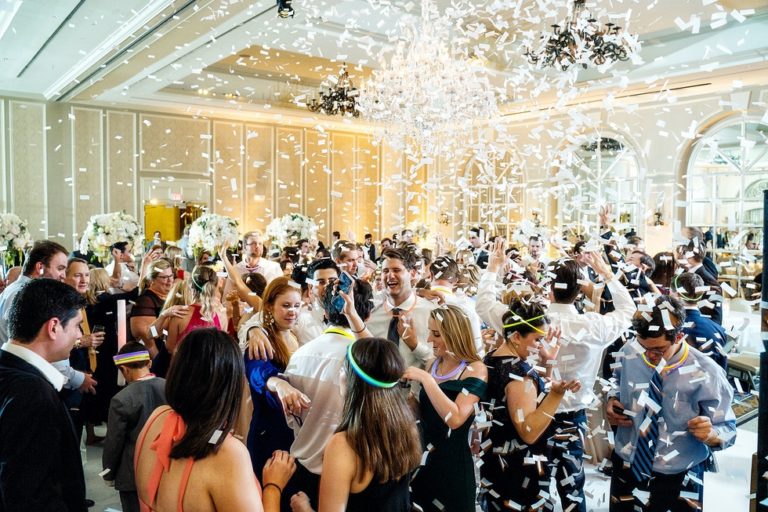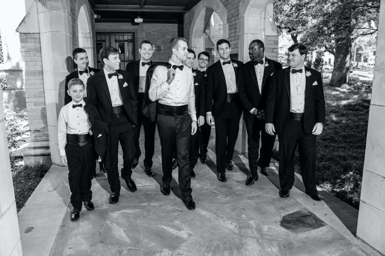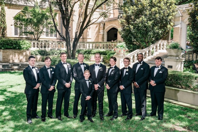 Emma & Stuart hosted a beautiful and classic wedding in the heart of Dallas. Guests were first introduced to the lovely design through their letterpressed and foil stamped invitations with custom watercolor venue drawings created by Significantly Said: Invitations by Significant Events. Bridesmaids wore blush and carried lovely blooms of ivories and blush. Emma was radiant and royal in her silk ballgown with crystal headpiece and cascading orchid bouquet. The ceremony was held in the most beautiful church with vaulted ceilings and stained glass windows. The reception was held in a 100 year old hotel in the heart of downtown filled with so many unique architectural elements. The ballroom sparkled with crystal chandeliers extended above a white dance floor. Tables were adorned with gorgeous blush and ivory florals atop ivory linens. The head table was especially grand with tall florals and candles! After sampling the delicious dinner stations, guests got to taste the incredible cakes – Emma’s was a classic buttercream creation accented with fresh florals, and Stewart’s was the most amazing rendering of the stadium of his alma mater – the University of Alabama! Alabama and Texas A&M battled it out on the dance floor for most energetic fight song, which was such a blast! The party continued throughout the night dancing to the music of the DJ and enjoying late night snacks of boozy milkshakes and Whataburger chicken biscuits. The night ended with a sparkler send-off into a classic car.