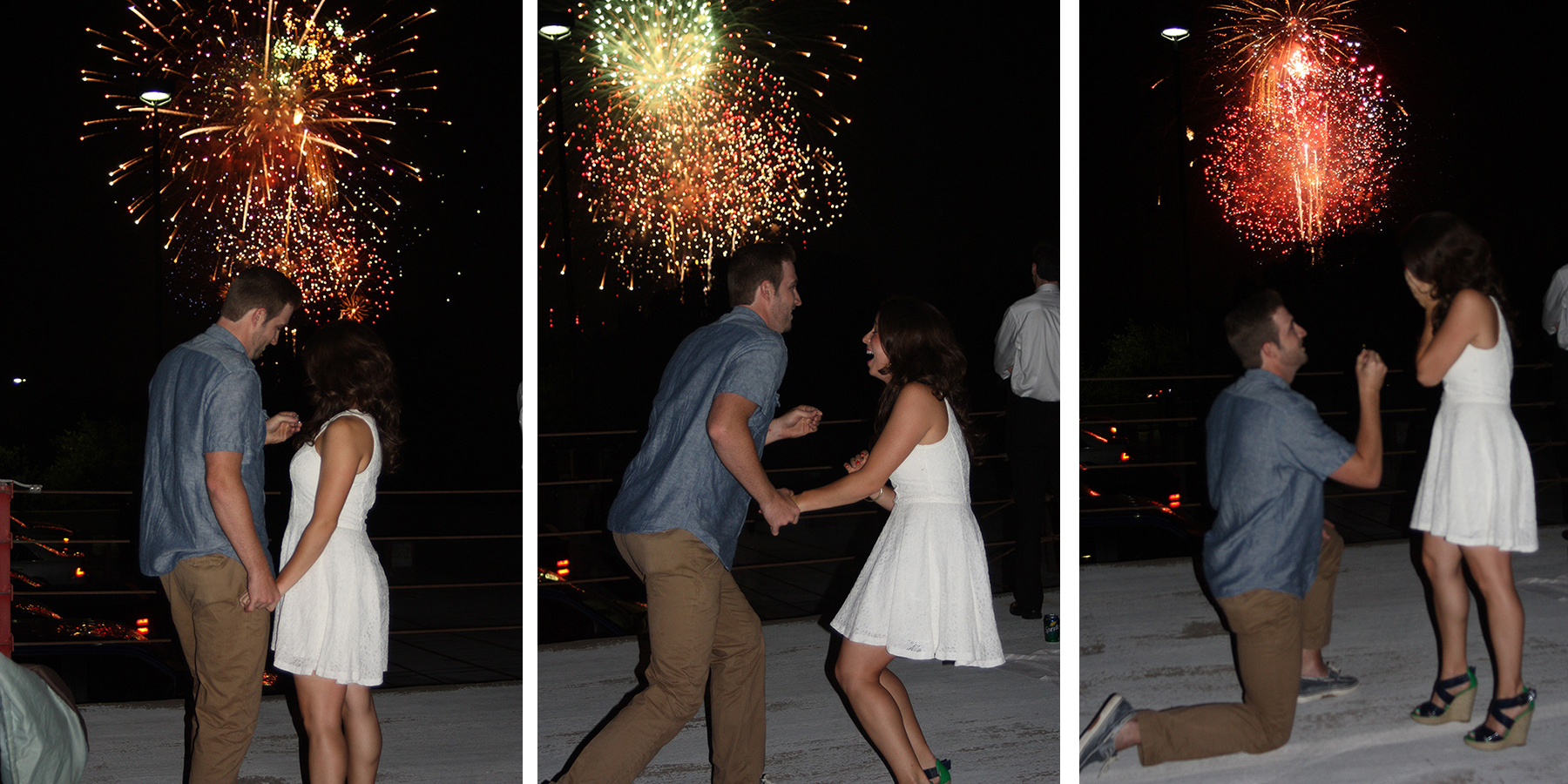 For as long as I can remember 4th of July has been my favorite holiday, filled with memories of backyard barbecues, the smell of summer and sparkling explosions in the sky! So this past July when Seth told me he wanted to spend the day together and go watch a fireworks show, I didn’t think anything of it. After a day of relaxing, we headed to Kaboom Town in Addison in a borrowed truck from one of his friends. On the rooftop of the Intercontinental Hotel, during one of the best fireworks finale’s in the country, Seth said “You think those are pretty…check this out” and pulled a beautiful ring out of his pocket and proposed. What I thought what a photographer from the town of Addison, turned out to be a friend of his that captured the entire experience. Seth took my expectations for a proposal and blew them out of the sky…literally!